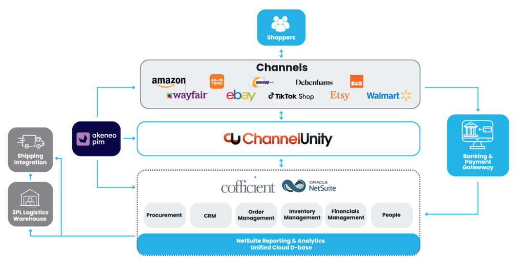 Together, ChannelUnity and Cofficient support retailers looking to build a fully connected ecommerce operation. While Cofficient focuses on implementing and optimising NetSuite, ChannelUnity helps retailers connect their ecommerce platforms and ERPs to online marketplaces such as Amazon, eBay, Etsy and many more.